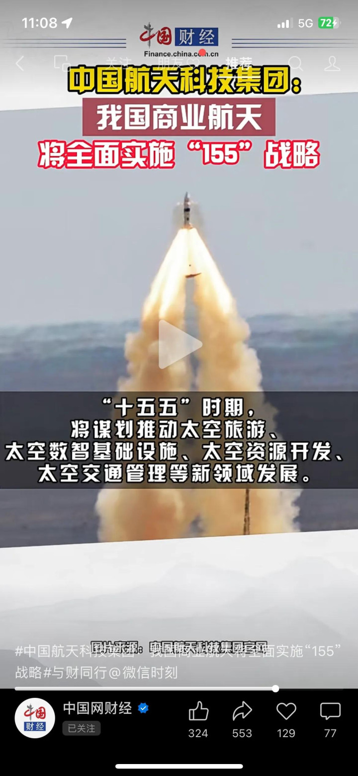 中午吃饭的时候,做一级市场的朋友还跟我聊,说现在资本都在抢着投商业航天项目,卫星制造、火箭发射的公司估值都涨了不少,就连A股的商业航天板块,也跟着动了。
